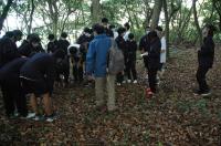鹿島の森・・・国指定天然記念物の照葉樹林原生林とアカテガニの観察を行いました。タブやスダジイ、ヤブツバキ等の常緑広葉樹を確認することができました。