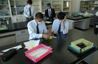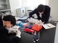 生物実験①・・・PGLOバクテリア遺伝子組換えキットを使用した、大腸菌の遺伝子組換え実験を行いました。滅菌操作や培地の扱い等、慣れない操作に苦戦しながらも、シャーレをインキュベーターに入れるところまで完了することができました。