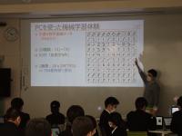 AI技術の概要とアンプラグド演習についての講義・実習とPCを使った画像認識体験についての講義・実習で、実際に数式を使って猫とライオンの分類をする実習と、手書きの数字をコンピュータに認識させる実習を行いました。