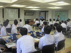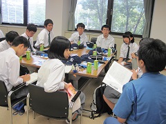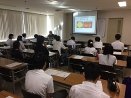 講義の中では、ご自身が専門とされている内容のお話とは別に、科学を究めるには『好奇心』と『集中力』が大切だ、など高校生の皆さんへの熱いメッセージもくださいました。 9月7日(金)にCS学際科学の授業の一環として、企業研修を行いました。技術者の方々による講義や工場見学をとおして、今、企業人として求められているスキルや現在のものづくりの現場がいかに進歩しているかということ等を学ぶことができました。また、後半はグループディスカッションの場を設けていただき、疑問に思っていることを直に社員の方々へ質問することもできました。