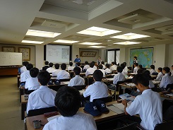 9月9日(土)に、北陸電力教育振興財団元氣創生塾とのコラボ企画で上記の講義を開催しました。講師は、株式意会社トイットデザインの代表取締役である戸井建一郎先生で、「建築デザインの世界」という演題で講義をしていただきました。今回の講義の参加者は、理数科・普通科1・2年生の希望者47名。建築分野の講義は初開催でしたが、多数の生徒が戸井先生のお話に耳を傾けていました。
