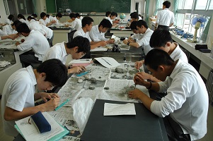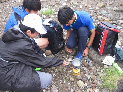 7月28日(金)~29日(土)にかけて白山野外実習を実施しました。今年は生徒40名、引率9名、金沢大学のTA(ティーチングアシスタント)8名の57名が8班に分かれて登山を行い、各ポイントで沸点測定や地質・植生調査等の実習を行いました。