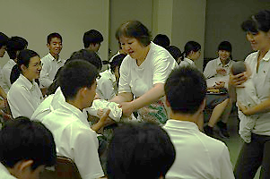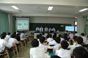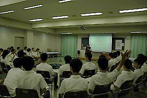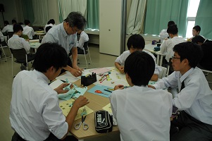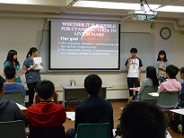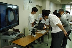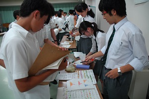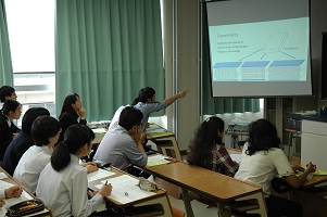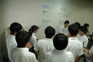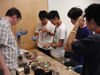 学生とディスカッション(ハーバード大学) 指紋の検出実習 課題研究の発表