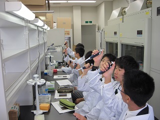 2017年1月4日 11時30分11月25日(金)に、石川県立大学の研究所を訪問し、大腸菌のDNAを用いた実験実習を行いました。中谷内修先生やティーチングアシスタントの方がわかりやすく説明してくださったおかげで、全員がDNAのバンドを確認することができました。