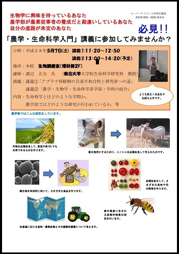 5月7日(土)スーパーサイエンス部特別講義のご案内