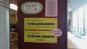 2016年5月26日 11時50分 石川県文教会館の教育資料ロビー展「特色ある学校の活動」に、理数科3年生が2年次にAIプロジェクト(課題研究)で作製したポスターを展示しています。この機会に是非ご覧ください。