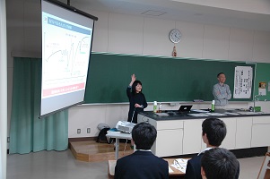 2016年5月11日 08時25分 5月7日(土)に東北大学大学院生命科学研究科の渡辺正夫先生と、本校の卒業生でもある研究員の辺本萌さんをお招きし、農学・生命科学に関する特別講義を行いました。