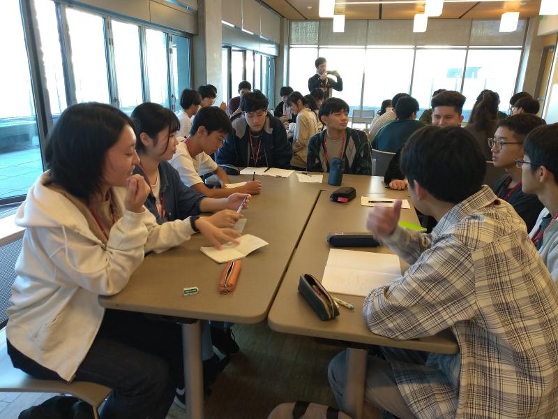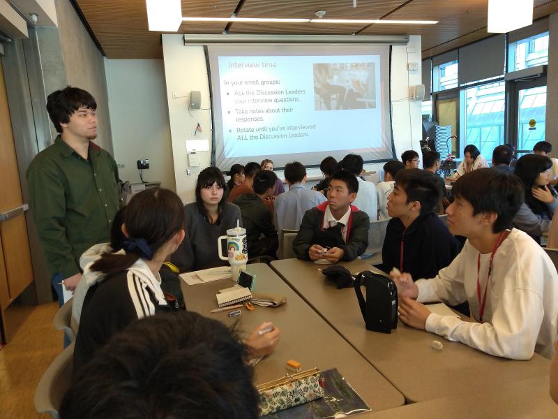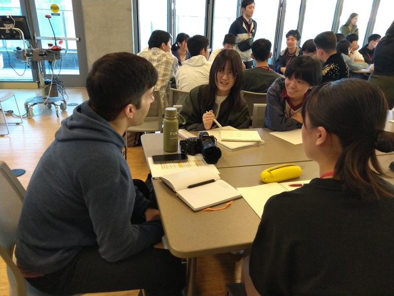 各グループに1~2名のDiscussion Leaderがつき、アイスブレイクの後、事前に決めていたテーマに関する10個の「開いた質問」をつくりました。開いた質問とはhow、What、WhyなどのYes/Noで答えられない質問です。