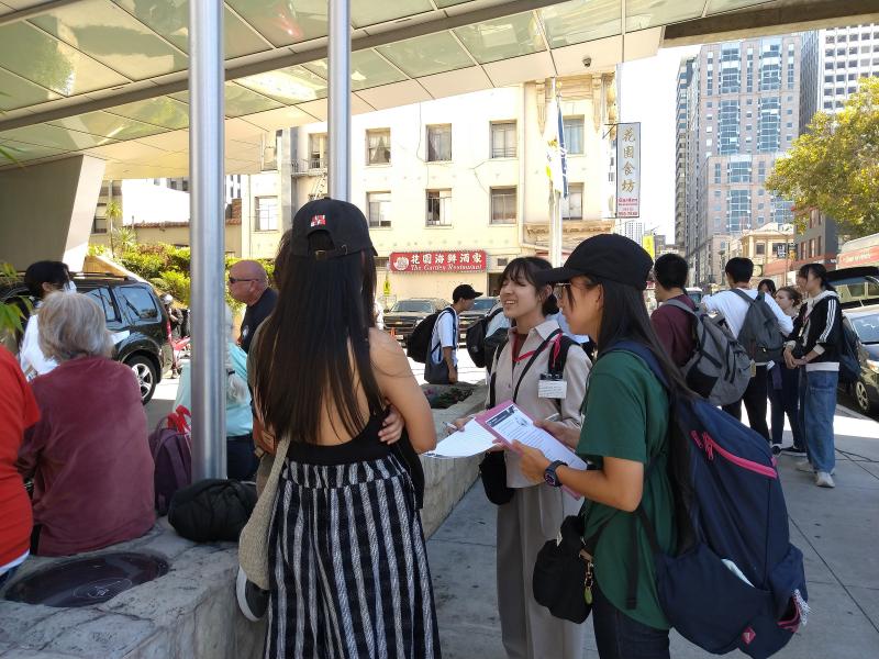 相手が日本人でも勇気のいる活動を、アメリカ人に英語でするというチャレンジング企画。思い切って声をかけ、断られて落ち込んだり、答えてくれた人の話を一生懸命聞いたりと、大きな経験になったようです。