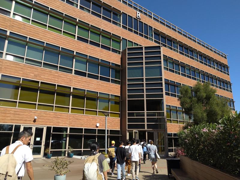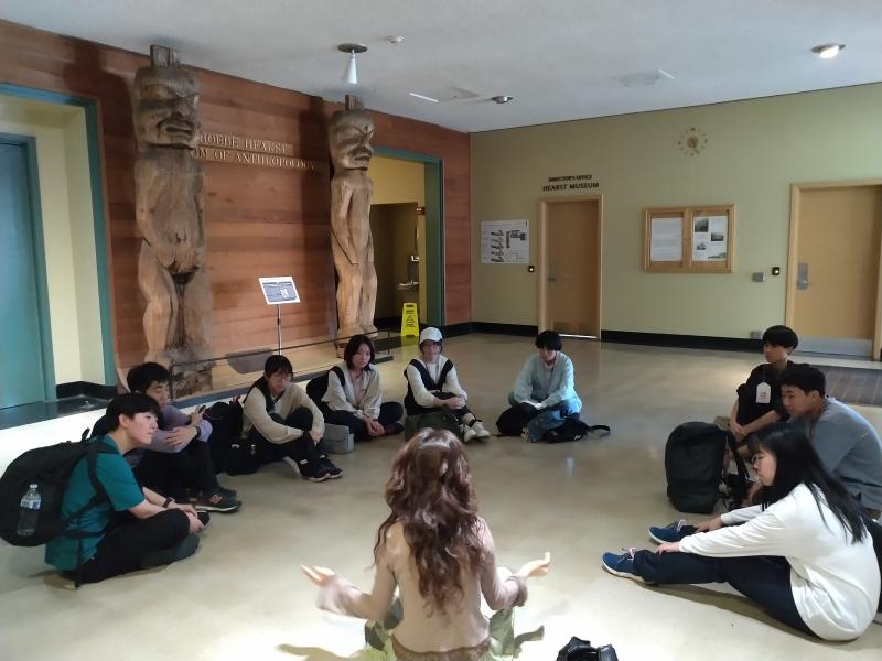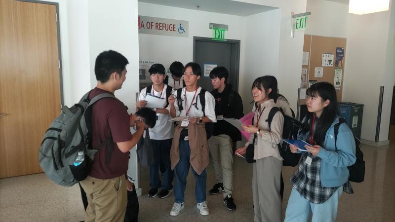4つのグループに分かれキャンパスツアースタート。大学生に説明を受けます。スタンフォード大学では外から見ることが多かったのですが、今日は建物の中もたくさん案内してもらいました。図書館がいくつもあったり、昔の顕微鏡や化石のレプリカが飾ってあったりと、日本の大学とは雰囲気が違います。学生が講義を受けている姿や、図書館で過ごしている姿を間近に見ることができました。