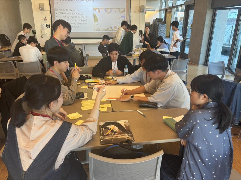 アイデアは試作段階なので色々な質問が上がります。発表後は、質疑応答をふまえてアイデアの改善点などを話し合いました。この一連の活動は「Design Thinking」と呼ばれるものです。