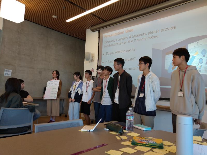 そして午後、ついに発表の時間です。理数探究で取り組んでいることと、米国研修で学んだことについて2分のスピーチを行いました。初めての経験にも関わらず、聴衆に質問を投げかけたり、ジョークを交えたりと、みんなとても上手!メモを見ずにスピーチをした人(+挑戦した人)もいて、この数日間で大きく成長したことが強く感じられました。
