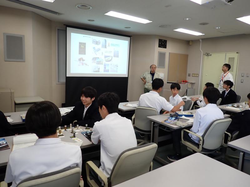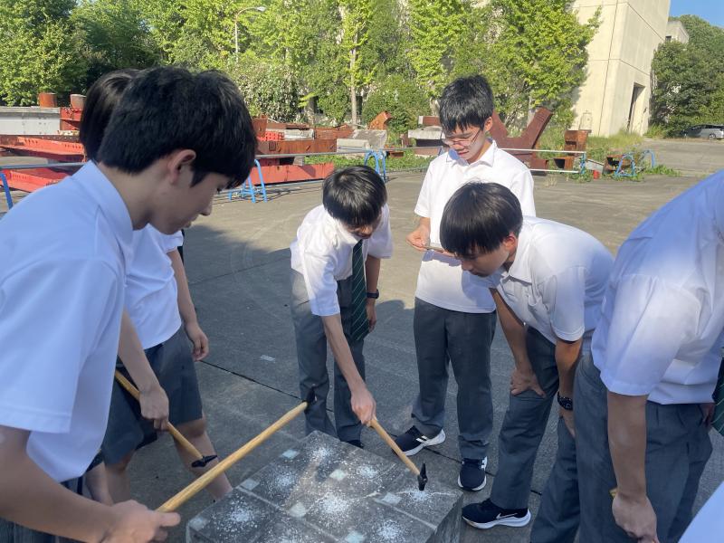 最初は物質・材料研究機構に関するセミナーを聴講し、金属当てゲームで様々な金属に直接触れて、その性質を学びました。その後、施設を見学し、素材の耐久性などを測定する様子などを観察しました。耐久性を調べるクリープ試験の見学中に、試験している金属が切れるという珍しい現場に居合わせることもできました。