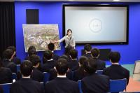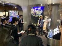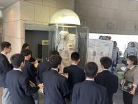 宇宙センターの概要説明を聞いた後、2グループに分かれて宇宙飛行士養成エリアの見学と「きぼう」運用管制室の見学を行いました。宇宙飛行士養成エリアでは、宇宙飛行士選抜試験で実際に使用された部屋を見ることができ、宇宙で行っている実験の説明を聞くこともできました。「きぼう」運用管制室では、それぞれの区画がどのような業務を行っているのか詳しく聞くことができました。モニターでNASAの管制室の様子やISLから見たリアルタイムの地球の様子を見ることもでき、大変貴重な体験をすることができました。