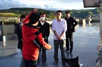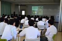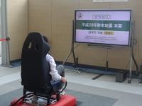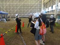防災研ではまず、代表者(今回はご厚意で5名)が地震ザブトンの体験をしました。東日本大震災などの過去の大地震や想定東海地震など、体験する地震を選ぶことができ、揺れの大きさや特徴を体験することができました。また、大型降雨実験施設の見学では、効率的に実験を行うため施設自体が移動することや、広大な実験施設の4分の1面ずつ雨を降らせることができるなど、巨大な施設を効率的に使用し多くの実験を行っていることがわかりました。