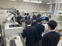 最初はNIMU(物質・材料研究機構)に関するセミナーを聴講し、金属当てゲームで様々な金属に直接触れて、その性質を学びました。その後、施設を見学し、素材の耐久性などを測定する様子などを観察しました。無機物質だけでなく、有機物も素材!!可能性は無限大です。