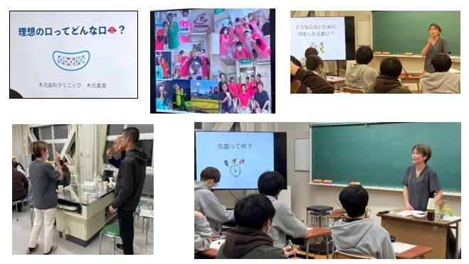 11月14日(金)3~4限目、木元クリニックの木元美貴先生による第1回学校保健委員会(歯科講話・実習)が行われました。色々な口元、虫歯や歯周病が進んだ写真などを紹介されながら「理想の口ってどんな口?」というテーマで、生徒たちに考えてもらいました。木元クリニックのいつも和やかで雰囲気が良いことも紹介され、生徒からは「歯医者の雰囲気が良く意外と行きやすいということがわかりました。」「歯医者のいろんな役割を学ぶことができて非常に勉強になりました。今回学んだ事を忘れず健康な歯で居続けたいです。」等の感想が寄せられました。講義後は、プラークチャッカーを用いて歯の汚れを確認しながら、歯磨き指導をしていただきました。木元先生、ご多用中ありがとうございました。