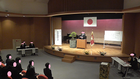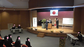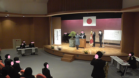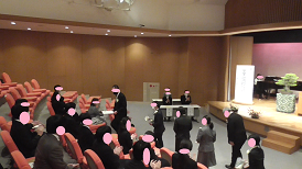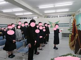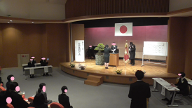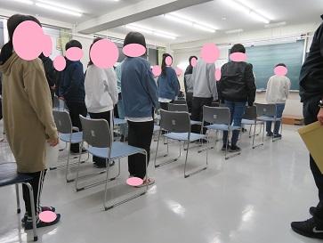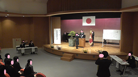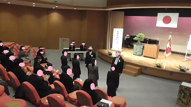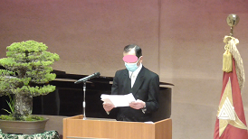 在校生から新入生へ(上)、新入生から在校生へ(下)と挨拶が交わされました。昨年に比べ全校で11名多くなりました。新しい出会いが、皆さん一人一人を大きく成長させてくれることでしょう。そのためには、自他の気持ちを感じ合える人になりましょう。