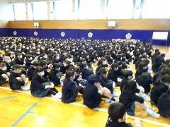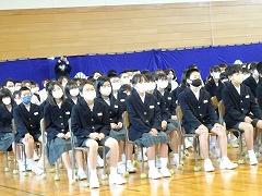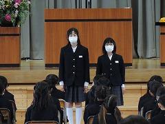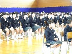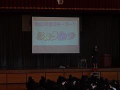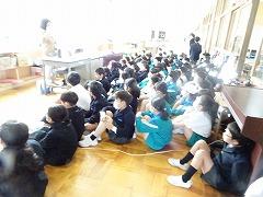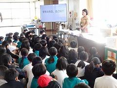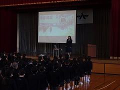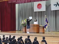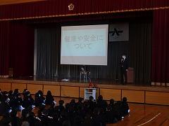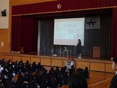 ↓交通安全の集いを行いました。6年生の代表が誓いの言葉を述べました。安全に十分気を付けて登下校してください。