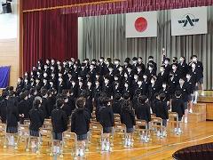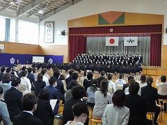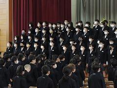 ↓6年生が心を合わせて、条南小校歌を披露しました。新1年生と保護者の皆様に条南小学校の校歌のすばらしさを伝えたいと一生懸命歌いました。いかがでしたか。