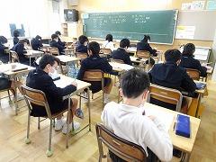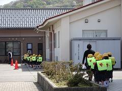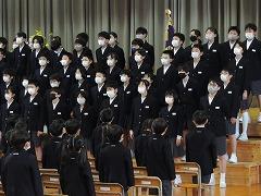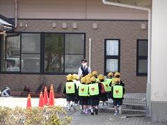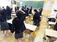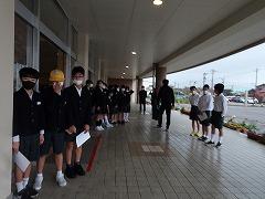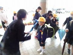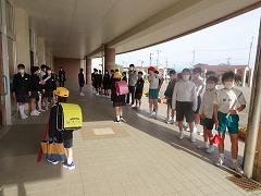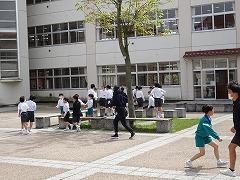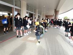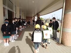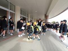 ↑1年生は、早帰りです。方面ごとに並んで教員が引率して下校します。安全に気を付けて登下校してください。
