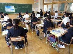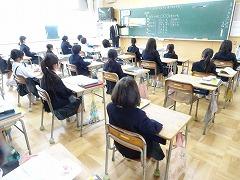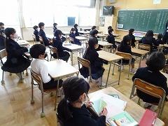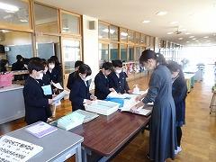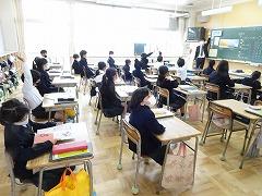 ↑各学級では、担任の先生に提出物を出したり、お話を聞いたりしました。