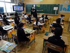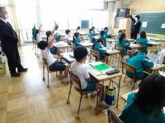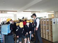 ↑1年生が学校探検で、校長室に立ち寄りましたので、クイズをしました。ここは、皆さんに賞状をお渡しするお部屋でもありますので、たくさん本を読んだり、漢字を覚えたりして、お勉強を頑張ってください。