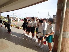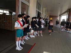 ↑挨拶を広めようと、6年生からあいさつバトン、スタートです。