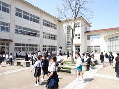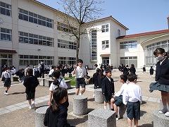 ↓長休みや昼休みは、お天気が良いので、たくさんの人が外に出て運動したり遊んだりしています。これは健康にとてもよいことです。
