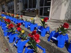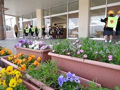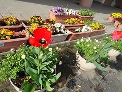 ↑2年生は新1年生のために植えたチューリップも花開いて嬉しそうです。
