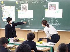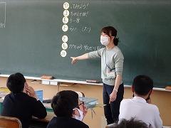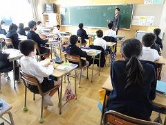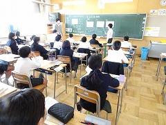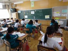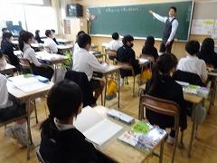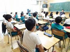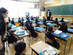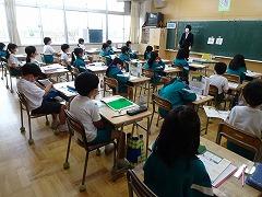 ↑高学年の算数は、教科担任制で行います。算数科の教員が、教室開きを5年生と行いました。