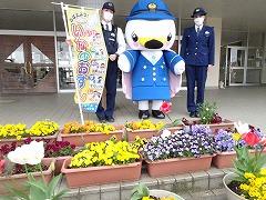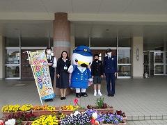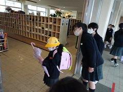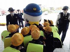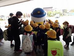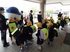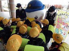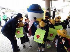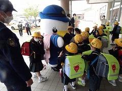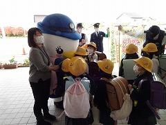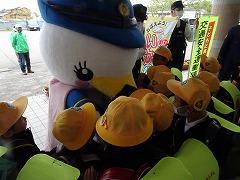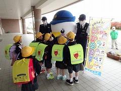 ↓子供たちに交通安全と「いかのおすし」を呼び掛けに、「しらとり係鳥」が条南小に来てくださいました。