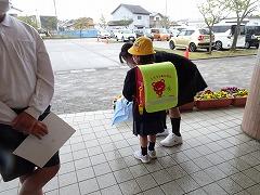 ↑1年生も元気に登校しています。だいぶ慣れたでしょうか。今日のあいさつバトンは5年1組でした。あいさつボランティアの皆さんも参加して、あいさつを広めています。