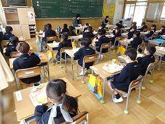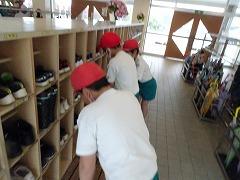 ↑5年生は、自分の下足の入れ方がきちんとそろっているか確認しました。そろって入れたつもりでも、確認してみると・・・確認の後は、このようにきれいにそろいました。ついでに、隣のクラスや他の学年の靴もそろえていました。素敵な心掛けです。