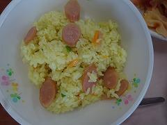 今日の給食は、カレーピラフ、リボンパスタのトマトソース、春キャベツのポトフ、お祝いいちごゼリーでした。