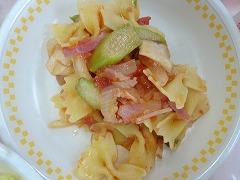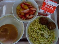 ↑今日は、ミルクロール、ミートボール、ペペロンチーノ、フルーツポンチでした。ペペロンチーノには、キャベツ、玉ねぎ、エリンギ、にんにくがたっぷり、オリーブオイルで炒めてあります。フルーツポンチには、フレッシュいちごが入って、パイナップルや、黄桃、それから、あまうおゼリーとカラフルで楽しくなるメニューでした。今日もおいしい給食、ありがとうございました。