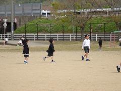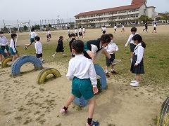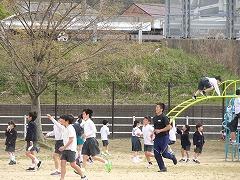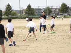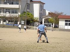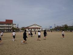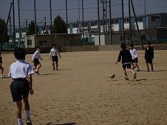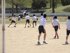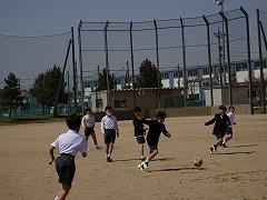 ↓中学年も先生とサッカー、楽しそうです。1年生と一緒にサッカーで遊んでくれる6年生もいました。