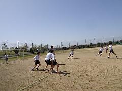 ↓高学年は思いっきりサッカーをして、運動を楽しんでいます。先生も入って、本気で、真剣勝負、楽しそうです。