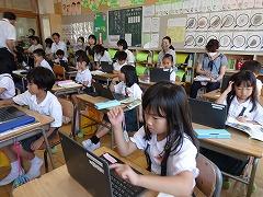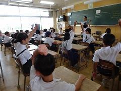 ↓振り返りには、たくさんの児童が手を挙げ感想を伝え合いました。