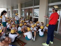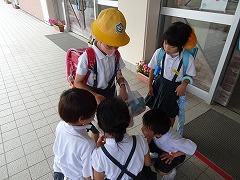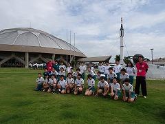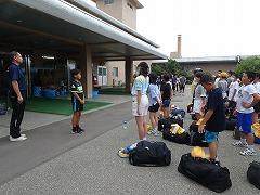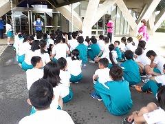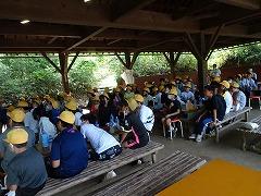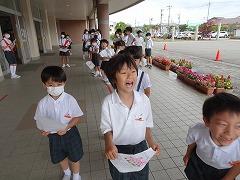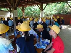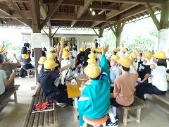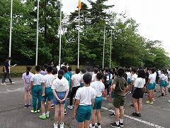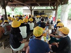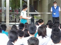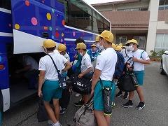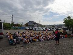 2023年6月29日 17時40分↓天気予報は、うまく外れ、薄日の差す中で、出発式ができました。目標や約束を確認してバスに乗り込みました。