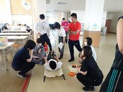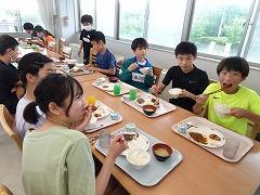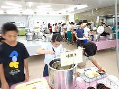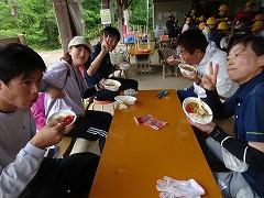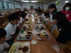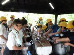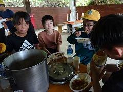 ↓みんなの協力のおかげで、ご飯が炊けてきました。どの班もとても上手で、ふっくらと炊きあがっていました。カレーの水分の量もとてもよく、おいしいカレーライスの出来上がりです。どの班も完食で、協力のカレーライスは最高でした。