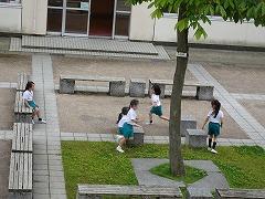 ↓気持ちのよい朝になりました。中庭でフレッシュタイムです。