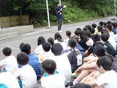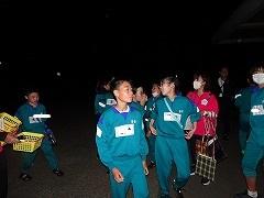 ↓ナイトアドベンチャー出発に向けて、説明を聞いています。班で協力して、地図を見て山道を探検し、カードを集めてきます。暗いけれど、班で協力して、探そう、どこかな。
