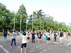 ↑関西版ラジオ体操で、笑顔でラジオ体操をしました。