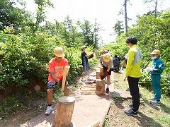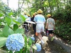 ↑林のアジサイロードを歩き、野外炊飯広場に向かいます。