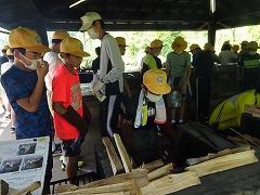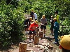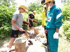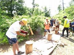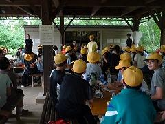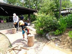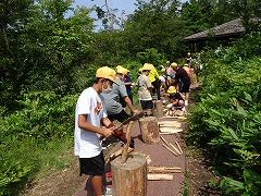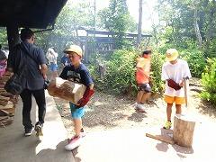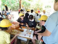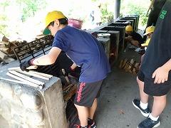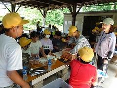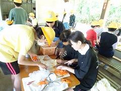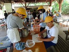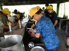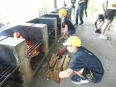 ↓2日目の活動は、野外炊飯で、カレーライスづくりです。かまど係り、薪係、ご飯係、カレー係りなど、分担して、協力して作りました。