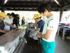 ↓後片付けも協力しました。鍋を磨き、灰を取り、食器を洗い、掃除もしました。
