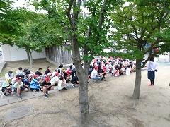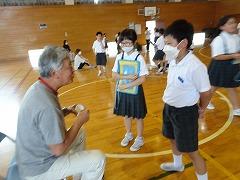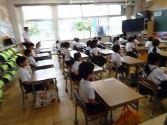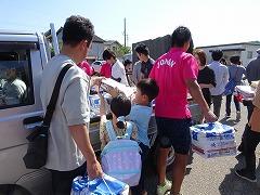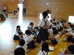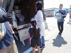 ↓次は声掛けボランティアです。避難所の方々に、少しでも明るい気分になってもらおうと、子供たちは声掛けを工夫しました。校歌を歌ったり、旅行のお話をしたり、勉強で習ったことをお話したりと、会話を楽しみました。