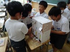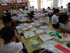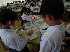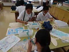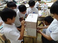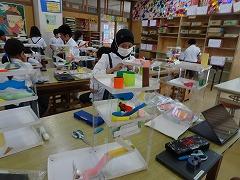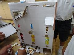 ↓4年生 図工 ころころころがーれ ずいぶん完成に近づいてきました。4階建てコースです。試しながらコースを工夫し、ボンドで壁や障害物、コースを丁寧に加えて作っています。