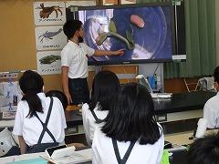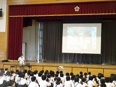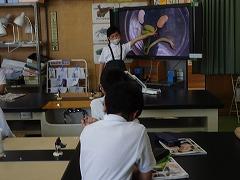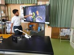 ↑講師の先生による、災害時の状況や避難所での注意点などについて映像を見ながら教えていただきました。
